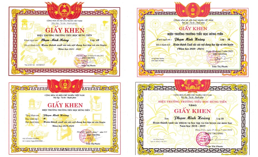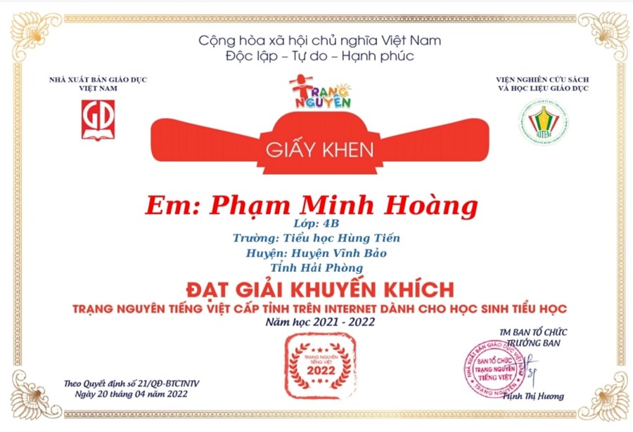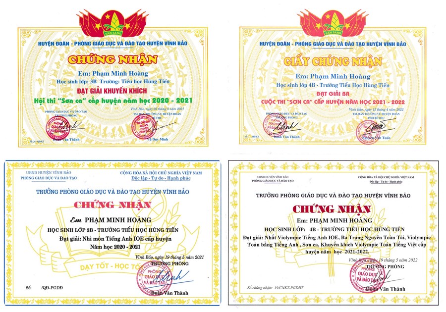 Đặc biệt năm học 2022-2023 Hoàng còn đạt giải Nhì cuộc thi Giải Toán bằng Tiếng Anh qua mạng Internet.