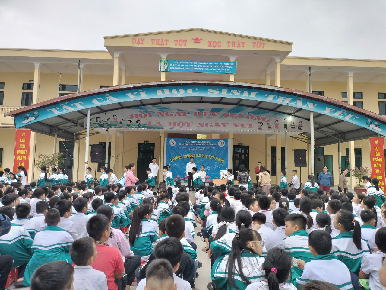 Trong không khí đầy ắp sự cảm thông, tinh thần sẻ chia, các thầy cô và các em học sinh xúc động trước các tiết mục văn nghệ ca ngợi về Đảng - Bác Hồ kính yêu, quê hương, đất nước, công cha nghĩa mẹ, thầy cô giáo với tình cảm ấm áp làm lay động tình người. Đây cũng là dịp để thầy trò nhà trường chia sẻ, động viên những người có hoàn cảnh éo le, tật nguyền; giúp cho họ vơi bớt nỗi đau Da cam. Đồng thời, đây cũng là dịp để các em học sinh được chứng kiến những nghị lực phi thường của các bác, các anh, các chị, các bạn của đoàn đã vượt lên số phận, hòa nhập cộng đồng.