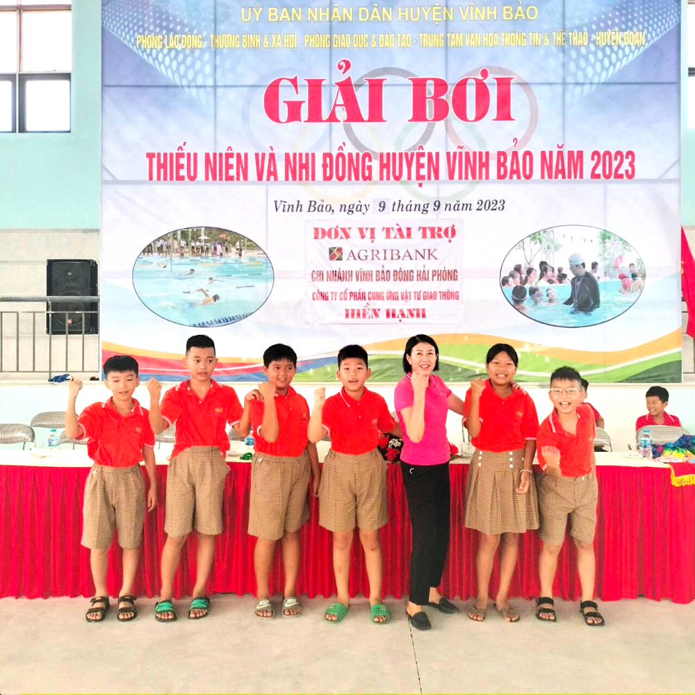 Sáng 09/9/2023, đội tuyển TDTT của Trường Tiểu học Hùng Tiến hứng khởi, tự tin tham gia Giải Bơi Thiếu niên và Nhi đồng năm 2023 do Trung tâm TDTT phối hợp với Phòng giáo dục và đào tạo huyện Vĩnh Bảo tổ chức.