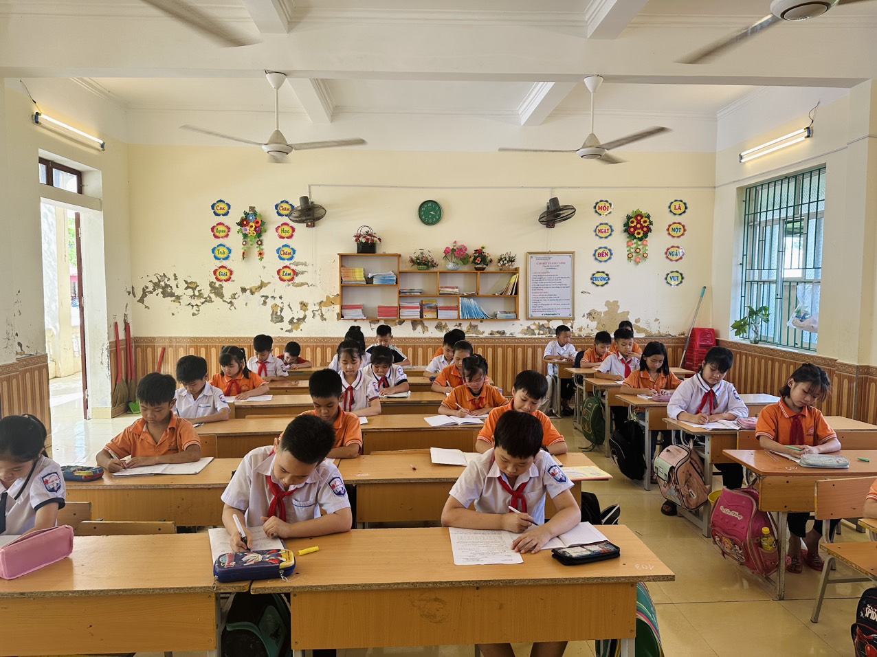 Tham gia đợt kiểm tra định kỳ cuối kỳ II năm học này, toàn trường có 597 học sinh, của 5 khối lớp, được chia thành 15 phòng thi (mỗi khối, lớp 5 phòng, mỗi phòng từ 21-25 học sinh. Danh sách HS được xếp theo alpha B. Lịch thi diễn ra trong một ngày. Buổi sáng khối 1, 2; buổi chiều là khối 3, 4,5. Giám thi, được phân công đổi chéo giữa các khối, lớp.